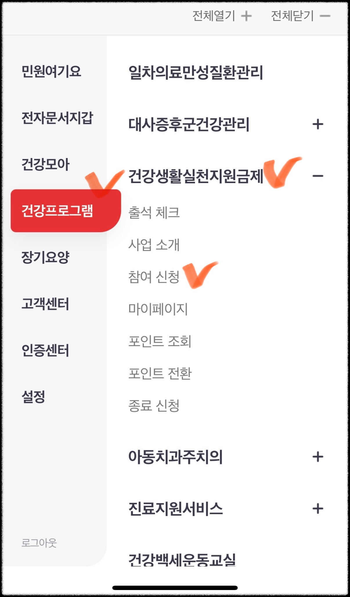 A 건강보험공단에서 건강정보 제공 및 활동기록을 통해 포인트를 정립할 수 있도록 운영하고 있습니다.