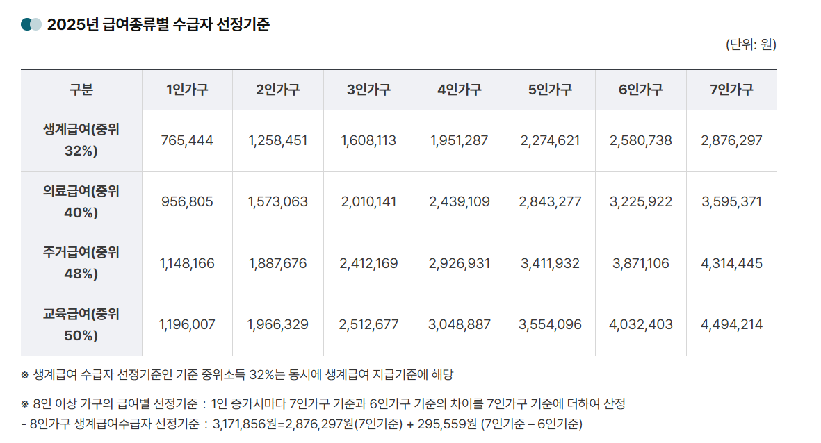 1. 2025년 생계급여 소득 기준은 어떻게 될까?