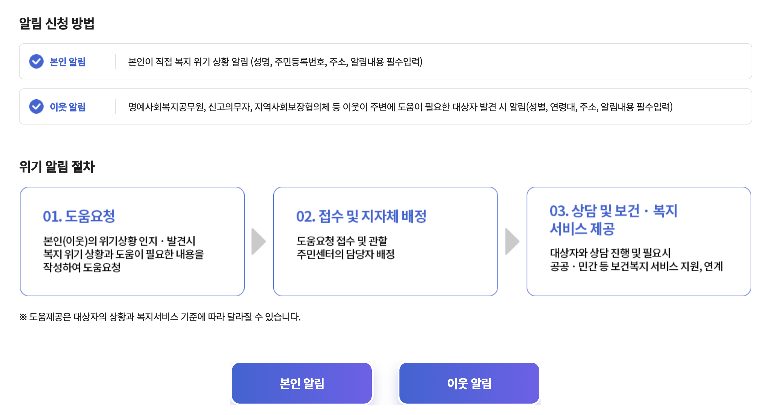 이용 방법 앱스토어에서 ‘복지위기 알림’ 검색 후 설치