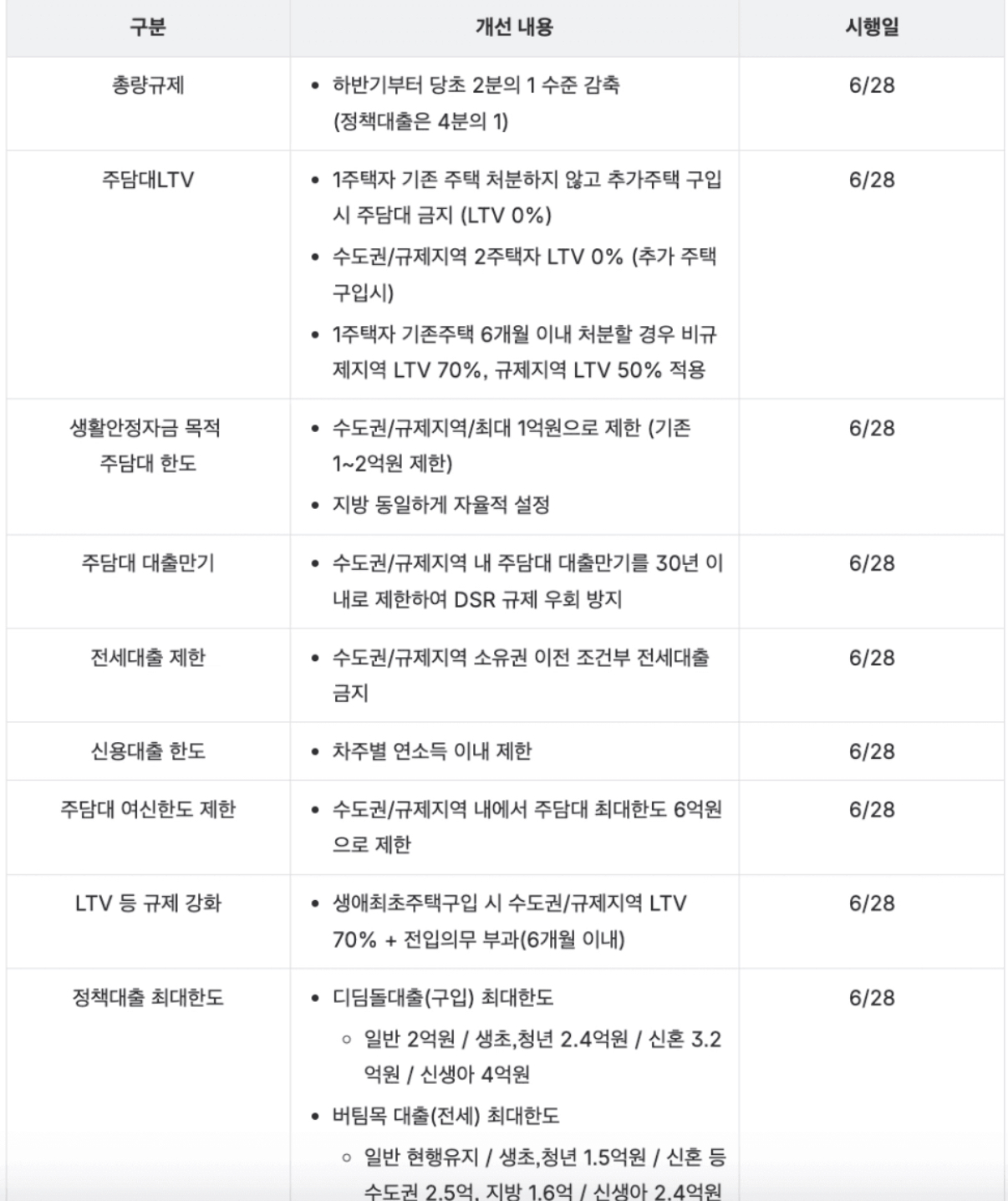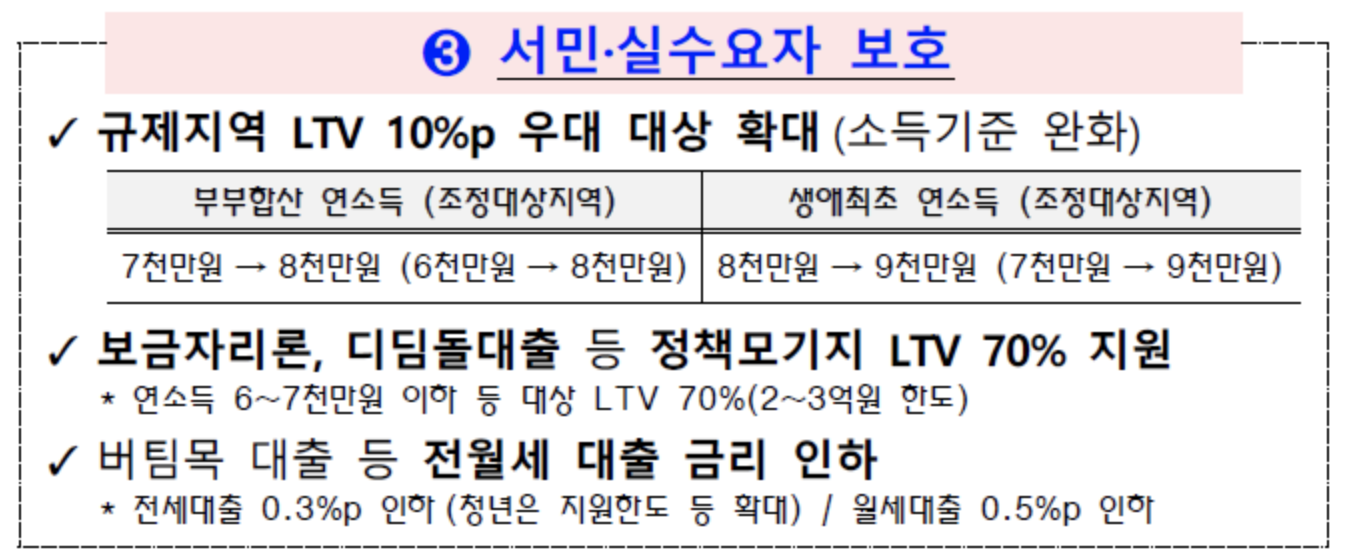 - 생활안전자금 주담대: 2억 → 1억 축소