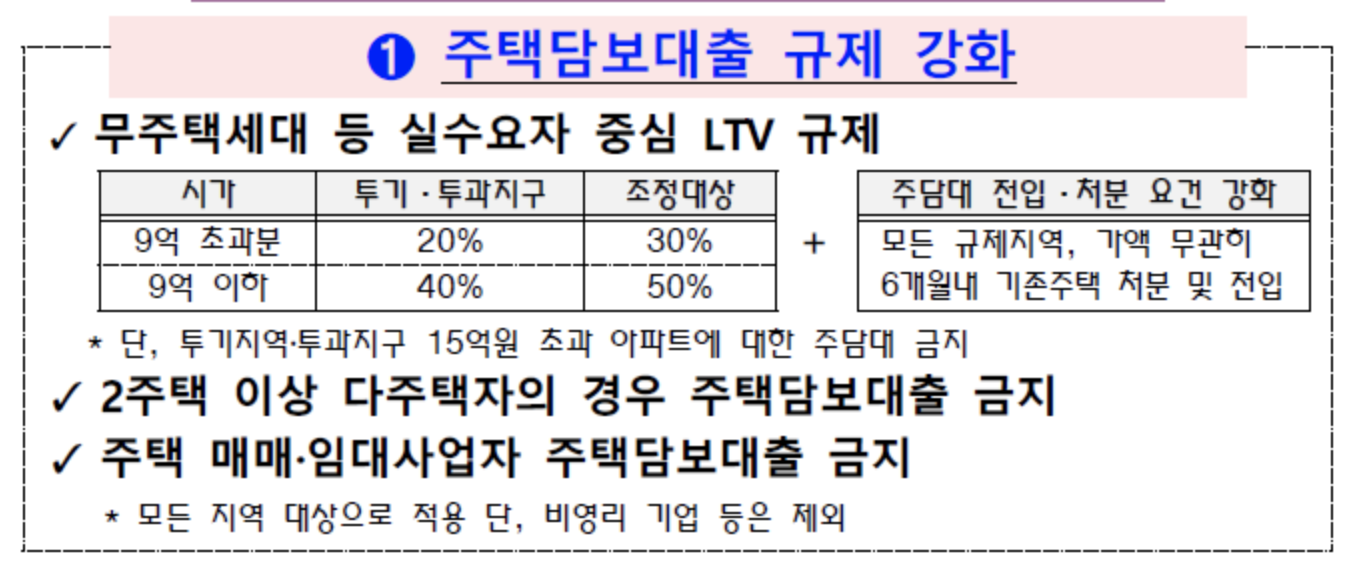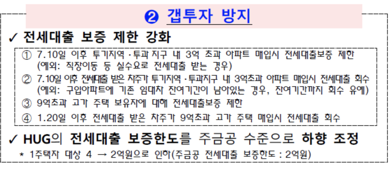 - 갭투자 수단 완전 차단 → 투기 목적 주택 매수 불가